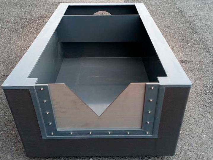 Both rectangular and round bottom tank are available as complete one-piece structures. Rectangular tank are also available as pairs of flume cheeks.